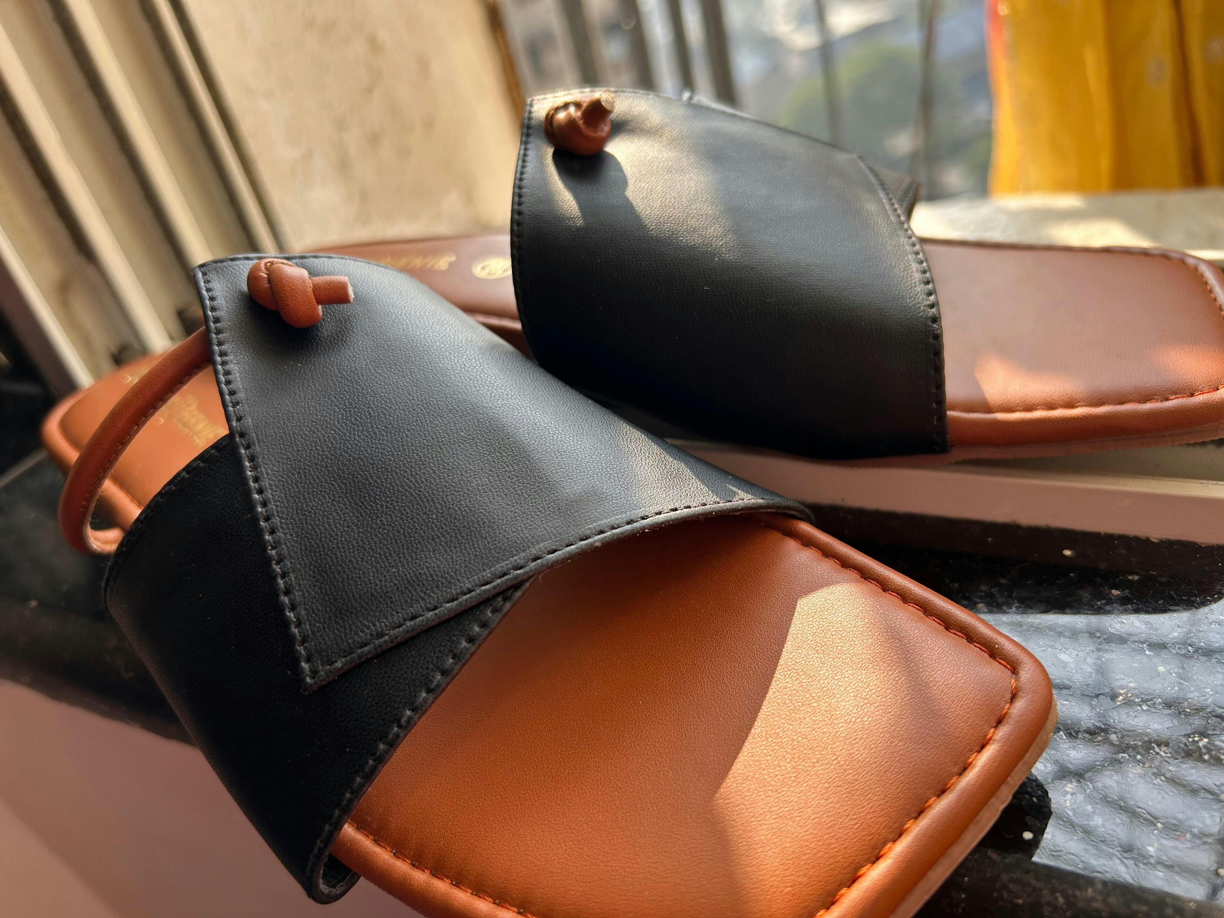 Add boldness to your step with these dual-tone flats in black and tan. With a unique strap design, cushioned insole, and durable TPR sole, they offer a perfect mix of comfort and contemporary style.