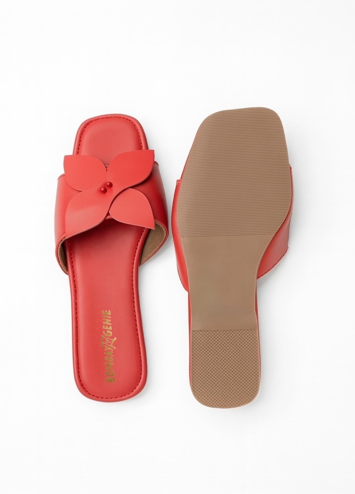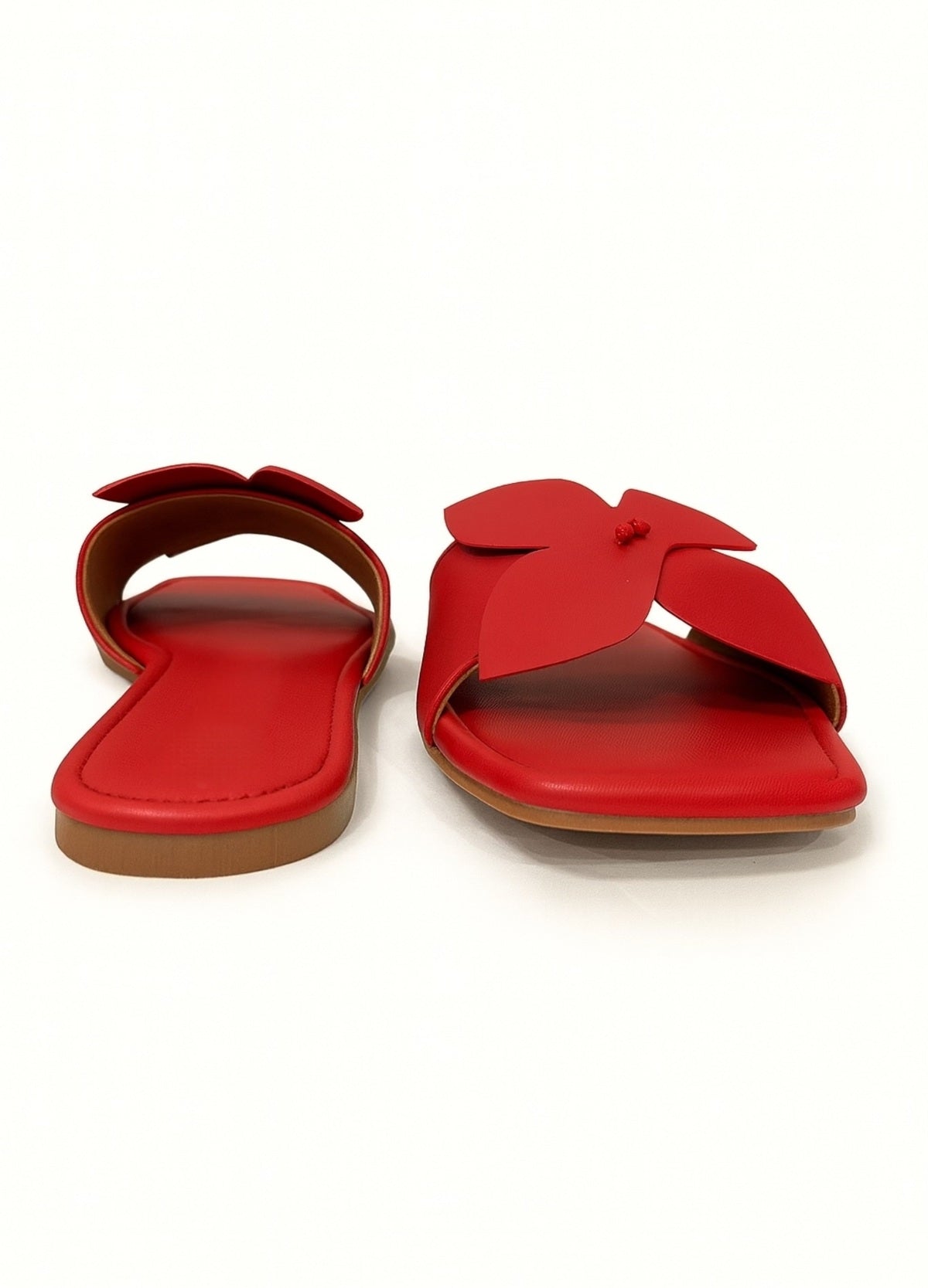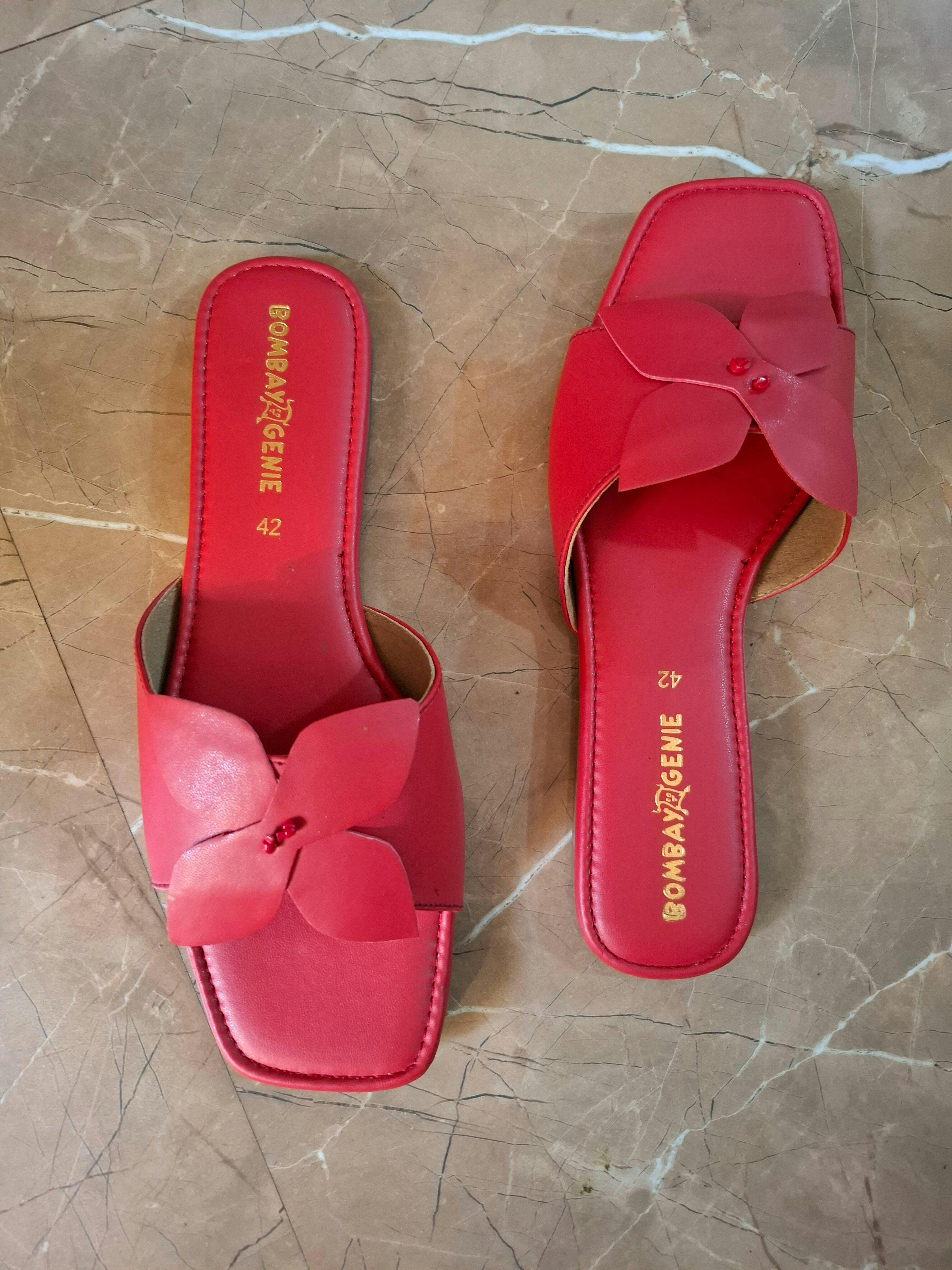 Add a pop of color with these red slip-on flats, featuring a chic floral cut-out strap. Crafted from faux leather with a 6mm cushioned footbed and durable TPR sole, these women’s sliders ensure all-day comfort. Perfect as casual flats, party wear sandals, or everyday slip-ons, they’re the ideal pick for effortless style.